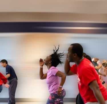 Join Afrobeat Dancercise to lift your spirits, burn calories, and learn joyful dance moves set to vibrant afrobeat and afrogospel rhythms.